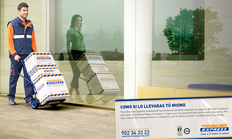 El mensajero, Tourline Express, transporta y entrega los envíos con la misma ilusión que los clientes los preparan. Con este mismo planteamiento creativo, también se ha desarrollado una campaña alternativa destinada a potenciales franquiciados. En este caso, el reflejo de un franquiciado es el reflejo de todo un equipo de Tourline Express.